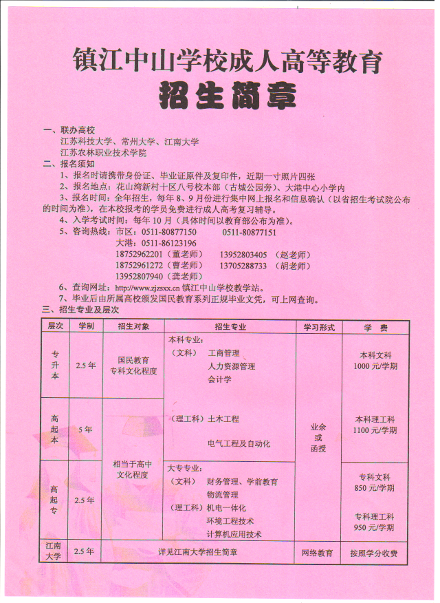 3.报名时间:全年招生,每年8、9月份进行集中网上报名和信息确认(以省招生考试院公布的时间为准),在本校报考的学员免费进行成人高考复习辅导。
